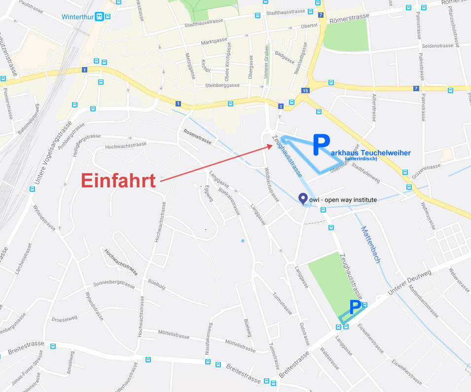 An unsere Besucher, bitte nicht auf dem Areal "Reitweg 7" parkieren. Nutzen Sie das öffentliche Parkhaus Teuchelweiher (ca. 150 m vom unserem Standort) oder das Parkareal am Ende der Zeughausstrasse/Unterer Deutweg (ca. 400 m von uns).